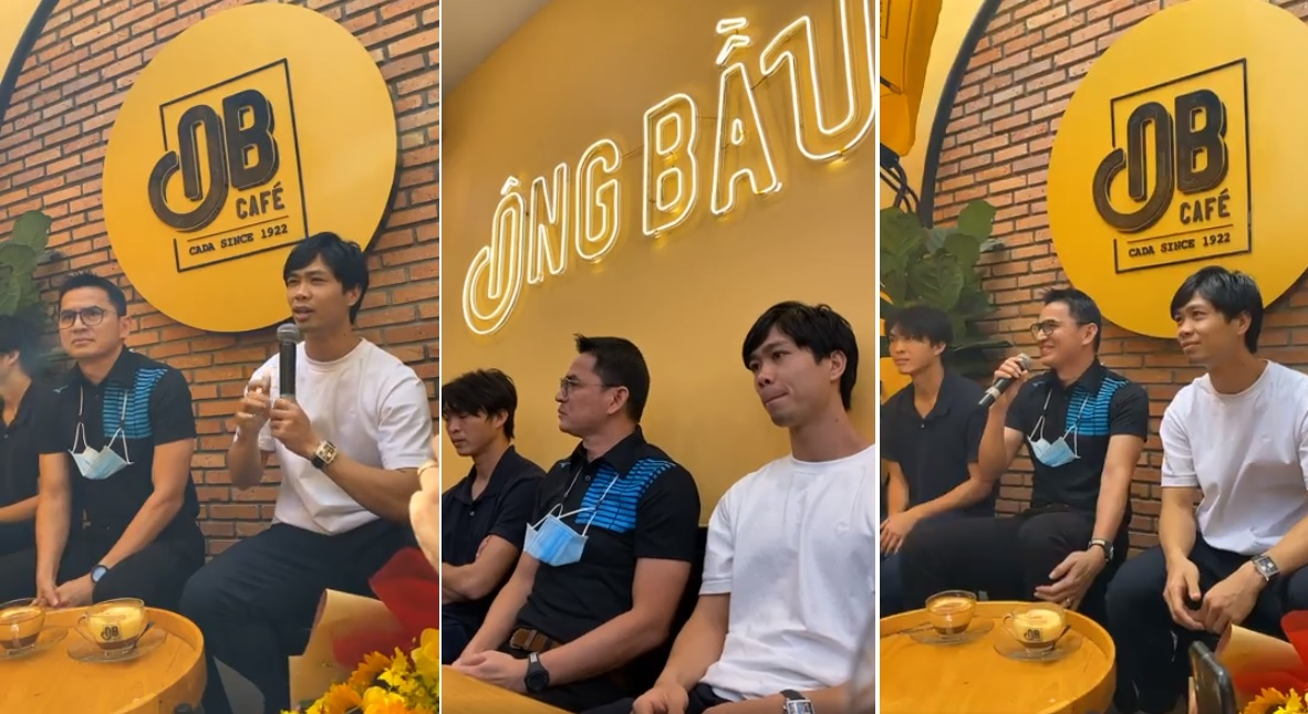 Tuấn Anh, Công Phượng cùng Kiatisak giao lưu tại quán cà phê Ông Bầu thuộc sở hữu của 6 cầu thủ HAGL.