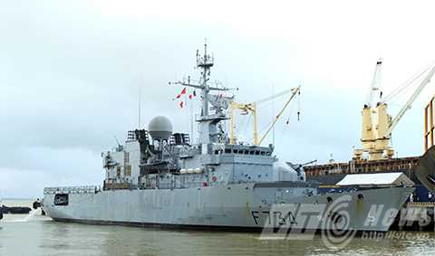 | Sáng 4/11, tàu tuần dương hạm Hải quân Pháp mang tên Vendemiaire đã cập cảng Tiên Sa |