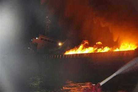 | Tàu hàng Panama bốc cháy ở một Vịnh của Nhật Bản |