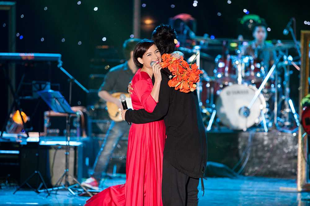 Phi Nhung đã có màn song ca rất mặn nồng với Tuấn Hưng, kết thúc bài hát là một cái ôm rất mặn nồng.