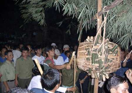 Sau phần lễ cúng với những quy định khắt khe, phần hội Đập trống chính thức bắt đầu trong không khí tưng bừng, náo nhiệt. Dưới ánh trăng, từng tốp người thay nhau đập trống, nhảy múa, uống rượu bên ánh lửa bập bùng.