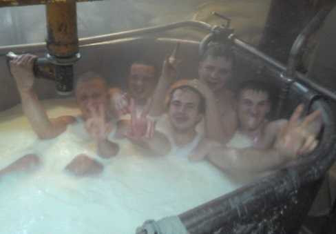 Cuối tháng Ba vừa qua, một nhân viên của Nhà máy sản xuất pho mát "Syry" của thành phố Omsk đã post lên mạng xã hội một số bức ảnh và clip, "khoe" họ đang được sống cảnh đế vương là tắm trong bồn sữa như thế nào.