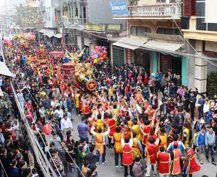 Trong ngày này, tưng bừng nhất là tục rước pháo; bên cạnh đó, các hoạt động văn hoá thể thao xung quanh khu vực diễn ra hội làng cũng không kém phần sôi nổi như: thi hát quan họ, thi chọi gà, vật dân tộc, thi cờ tướng… phục vụ du khách chơi hội.