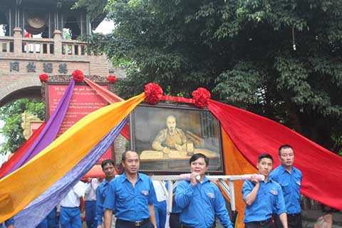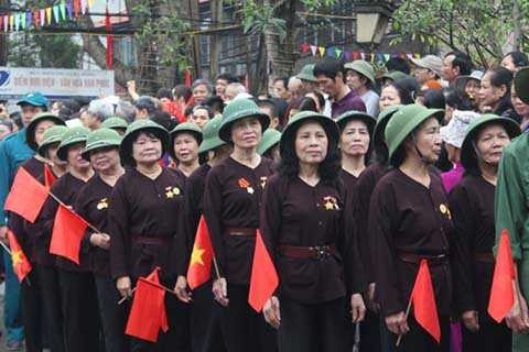 | Theo sau là đội rước ảnh Chủ tịch Hồ Chí Minh cùng "Lời kêu gọi toàn quốc kháng chiến" được viết tại làng lụa Vạn Phúc vào tháng 12/1946. Khi đó, làng lụa Vạn Phúc là an toàn khu của Trung ương Đảng và Xứ ủy Bắc Kỳ. |