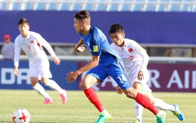 Amine Harit vượt qua sự truy cản của Lương Hoàng Nam.