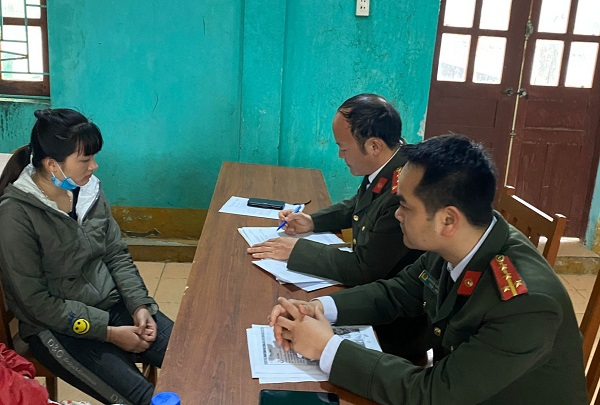 Cơ quan công an làm việc với Lò Thị Điều về hành vi đưa tin sai sự thật trên mạng xã hội.