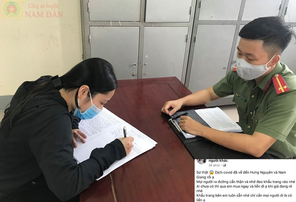 Được biết, ngày 3/8, Công an huyện Nam Đàn phát hiện tài khoản facebook “Nguyễn Yến Trang” đăng tải bài viết với nội dung: “Sợ thật, dịch CCOVID-19 đã về đến Hưng Nguyên và Nam Giang rồi ạ. Mọi người ra đường cẩn thận và nhớ đeo khẩu trang vào nhé.