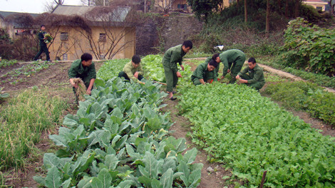 | Chiến sĩ Đồn biên phòng Nghĩa Thuận chăm sóc vường rau |