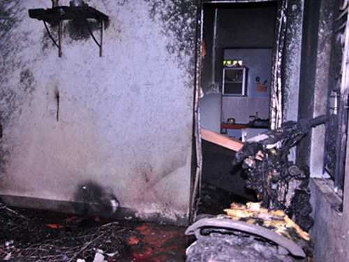 | Buồng ngủ của 2 vợ chồng, trong đó có chiếc xe máy tay ga, đã bị thiêu rụi. Ảnh: Quảng Ninh Online. |