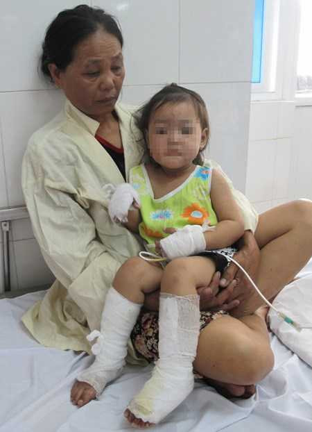 Chiều 14/11, bác sĩ Nguyễn Tiến Quân - Trưởng khoa ngoại Bệnh viện Bãi Cháy - cho biết cháu Nhi nhập viện trong tình trạng bị bỏng cả 2 chân, 2 tay. Do cháu bé bị bỏng 12% cấp độ 2 nên phải điều trị dài ngày tại bệnh viện.