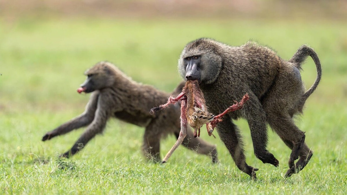Có vẻ như trong trường hợp này, con khỉ đầu chó đã lật mặt và làm thịt người bạn trong thiên nhiên của mình để lấp đầy cái dạ dày trống rỗng.