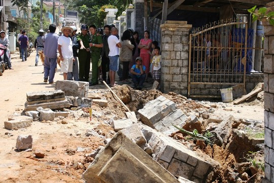 Trong lúc đang đào móng, bức tường bao bị tác động và đổ xuống vùi lấp 2 thợ xây.