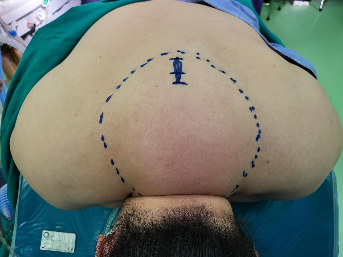 Một bệnh nhân nữ, biểu hiện kín đáo nên khó chẩn đoán hơn. Quan sát kỹ sẽ thấy khối u mỡ lớn vùng gáy và 2 khối u mỡ đối xứng vùng lưng. (Ảnh minh họa: BVCC)