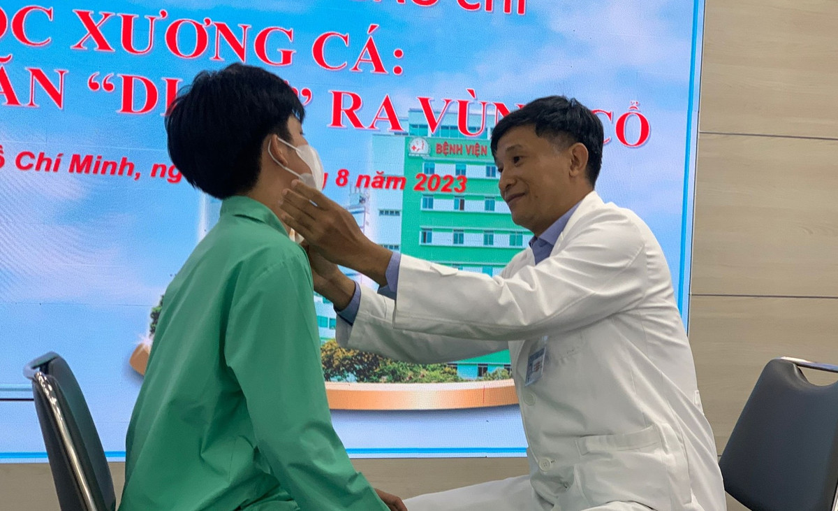 Ngày 14/8, thông tin từ Bệnh viện Tai Mũi Họng TP.HCM, các bác sĩ của bệnh viện vừa phẫu thuật thành công cho nam bệnh nhân 17 tuổi bị hóc xương cá từ đường ăn "di cư" ra vùng cổ.