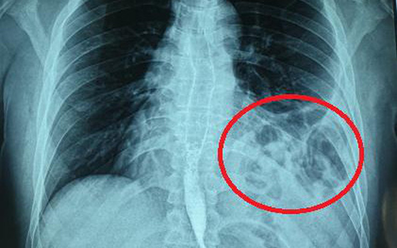 Đoán mình có vấn đề về đường hô hấp sau khi mắc COVID-19 nên H. đi khám chuyên khoa tại Bệnh viện Bạch Mai. Tại đây, H. được chỉ định chụp X.quang ngực và phát hiện tình trạng hình bóng hơi của ruột ở trên ngực trái.