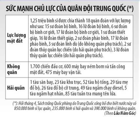 Theo đó, Trung Quốc sẽ tập trung phát triển khả năng viễn chinh cho quân đội, lực lượng tác chiến tàu sân bay, hiện đại hóa tàu chiến và các loại tên lửa đối hải lẫn đối không.