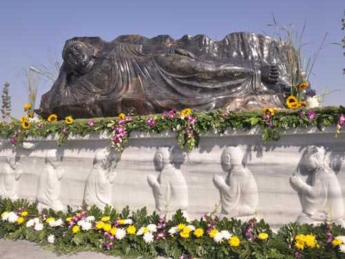 | Tượng Phật nhập Niết bàn bằng đá sapphire tại chùa Hội An. Ảnh: phatgiaobinhduong.com |