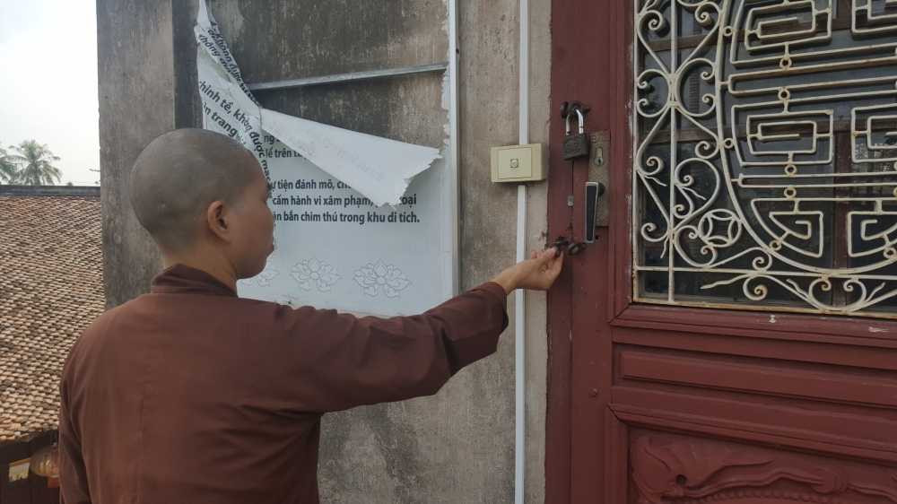 Sư thầy Thích Đàm Lan thông tin thêm: “Trong gian để tượng Phật có gắn camera an ninh, thế nhưng đối tượng đã lấy một chiếc áo đang phơi của thợ xây đình (bên cạnh chùa) và dùng một cây sào trong sân chùa để bịt camera”.