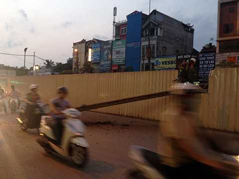 Tại hiện trường, thanh sắt rơi làm rách toạc một đoạn hàng rào công trình và nằm vắt ngang giữa đường. Theo lời kể của một số nhân chứng, trong quá trình cẩu sắt, họ không hề thấy bóng dáng của một công nhân nào đứng ra hướng dẫn hoặc phân luồng phương tiện giao thông để đảm bảo an toàn.