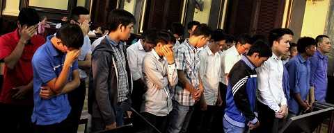 | Chủ mưu cầm đầu vụ án Văn Tuấn Tú (áo trắng, hàng đầu) tại phiên tòa |