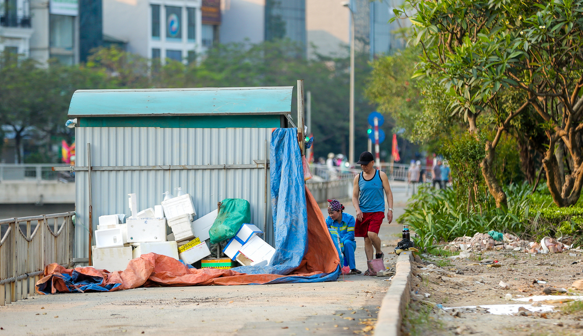 Theo ông Hưng từ ngày tuyến đường đi bộ ven sông Tô Lịch dừng hoạt động, nơi này đã trở thành điểm đổ rác trộm của người dân. Ngoài ra, nhiều điểm trên tuyến đường này thành chỗ tập kết phế thải. “Do người dân đổ rác quanh đây rất nhiều khiến mùi hôi thối bốc lên rất nồng nặc. Mặt khác, việc quây tôn, rào tạo ra nhiều góc khuất làm cho nơi đây trở thành chỗ tập trung cho những đối tượng nghiện vào buổi tối”, ông Hưng nói.