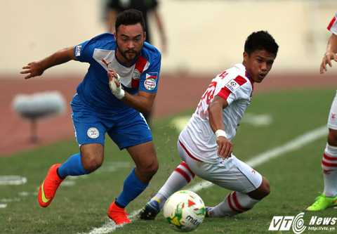 | Lào (áo trắng) chơi hay trong trận gặp Philippines (Ảnh: Quang Minh) |