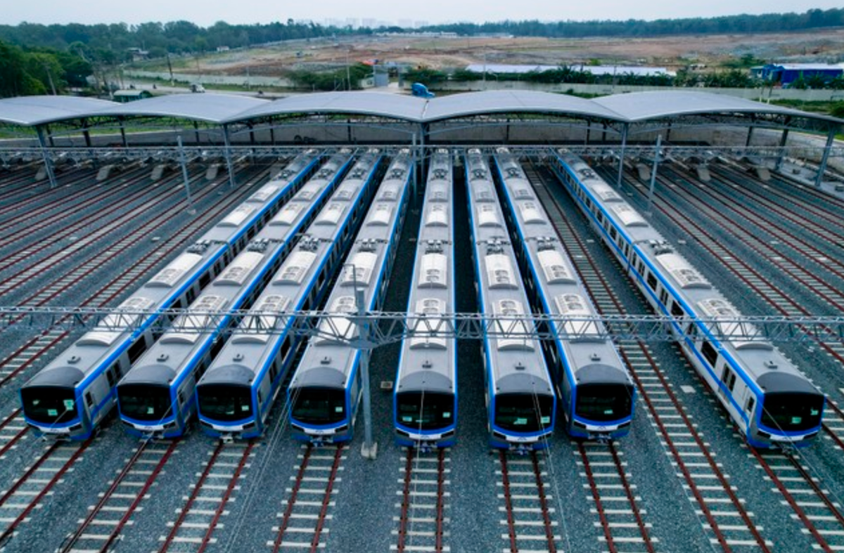 Một số đoàn tàu thuộc tuyến Metro số 1 TP.HCM tại depot Long Bình, TP Thủ Đức. (Ảnh: Duy Anh)