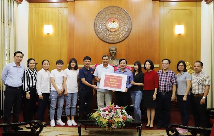 Sáng 8/5, tuyển nữ Việt Nam do HLV Mai Đức Chung làm trưởng đoàn đã đến Uỷ ban Trung ương Mặt trận Tổ quốc Việt Nam trao số tiền 30 triệu đồng, ủng hộ phòng, chống dịch COVID-19 với mong muốn, tấm lòng của những cô gái “vàng” Việt Nam sẽ góp sức cùng Đảng, Nhà nước khắc phục những khó khăn do đại dịch gây ra.