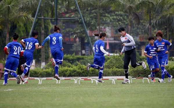 | Tuyển nữ Việt Nam hăng say tập luyện |