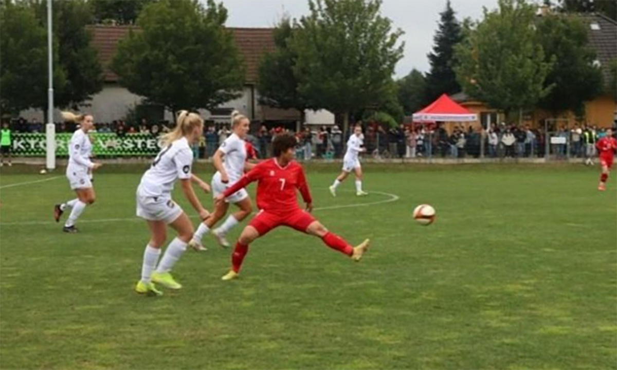 Các cầu thủ nữ Việt Nam tự tin triển khai lối chơi và liên tục ép sân trong phần lớn thời gian thi đấu