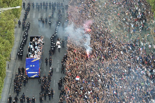 Lực lượng an ninh cũng được huy động rất đông để dọn đường cho chiếc xe buýt hai tầng. Cảnh sát Pháp đã phải làm việc rất vất vả để giải quyết các vụ việc do màn ăn mừng quá khích của các CĐV từ đêm chung kết World Cup.