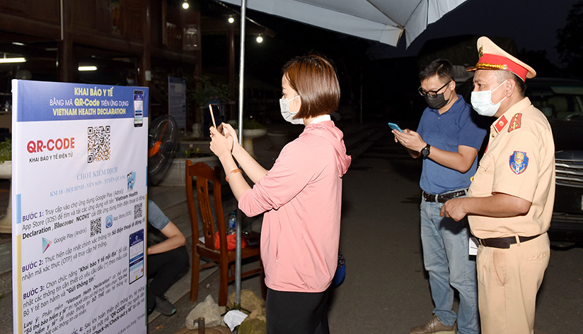 Người đến tỉnh từ vùng không có dịch khi vào tỉnh Tuyên Quang phải khai báo y tế. (Ảnh: Báo Tuyên Quang)
