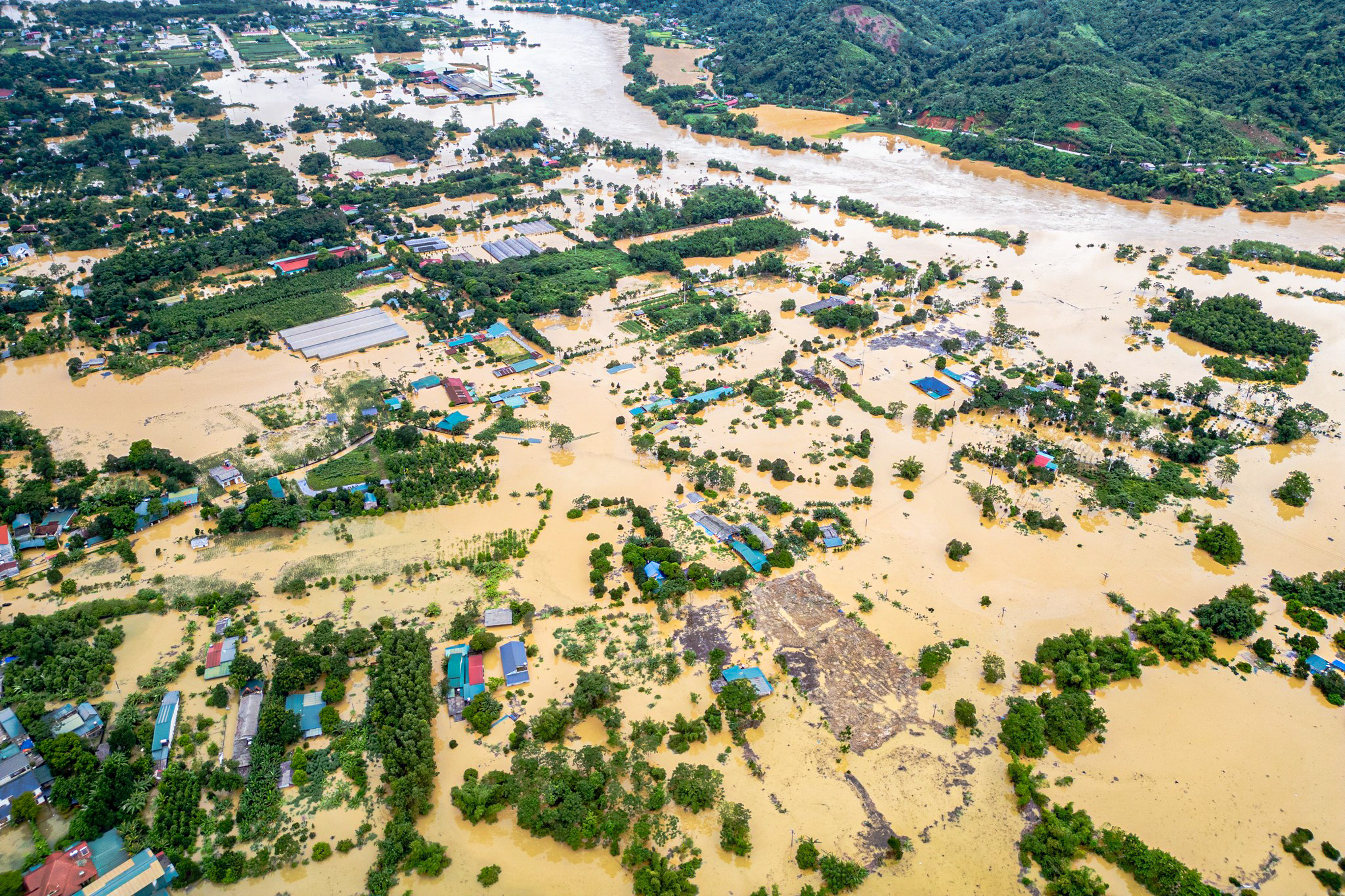 Hình ảnh Tuyên Quang nước ngập mênh mông, không thể phân biệt đâu là đường, đâu là sông.