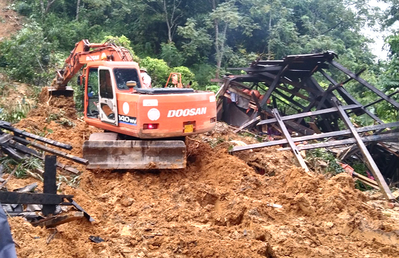 Ngay sau khi sự việc xảy ra, lãnh đạo UBND huyện, UBND xã kịp thời có mặt và chỉ đạo các lực lượng tại chỗ cứu hộ, cứu nạn tìm kiếm người bị đất đá vùi lấp, khắc phục hậu quả.