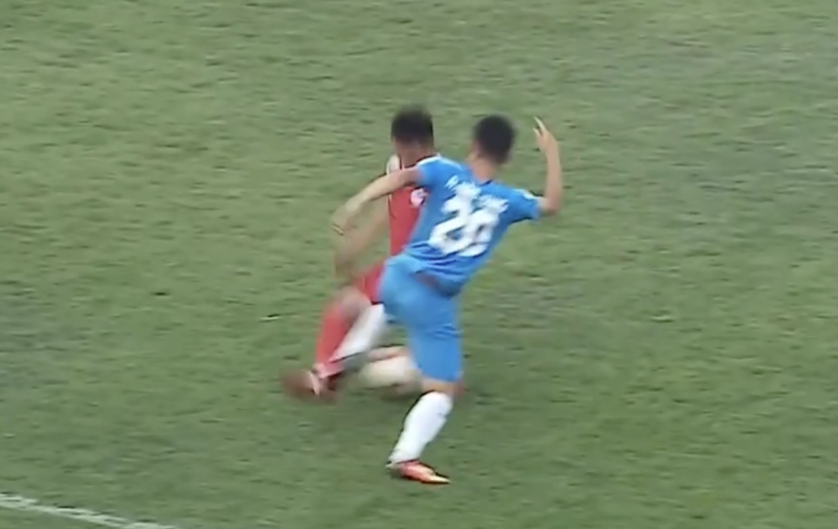 Pha vào bóng thô bạo khiến Nguyễn Văn Tùng chấn thương.