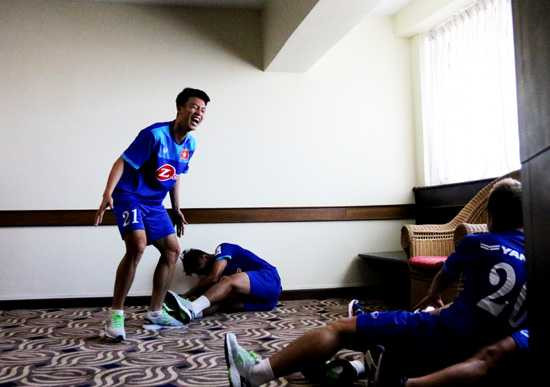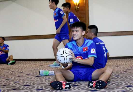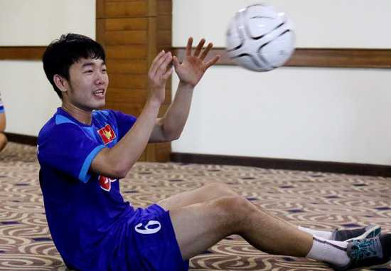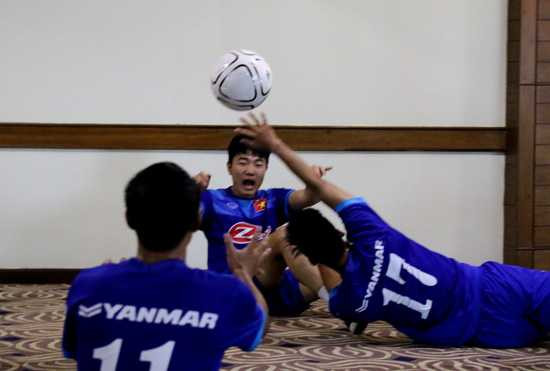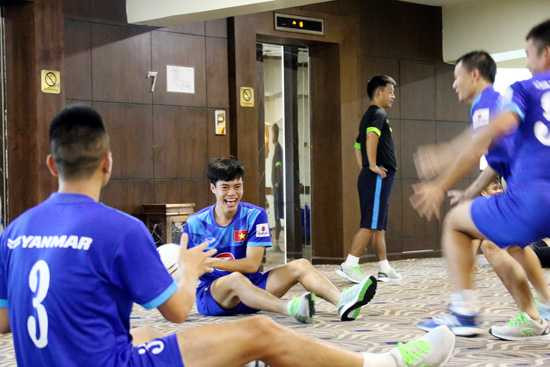 Buổi tập sáng nay của đội tuyển không diển ra trên sân tập như thường lệ mà được tổ chức ngay tại hành lang của khách sạn Yangon.