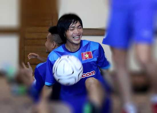 Xuân Trường rất nhanh nhẹn trong trò chơi tung hứng với trái bóng.
