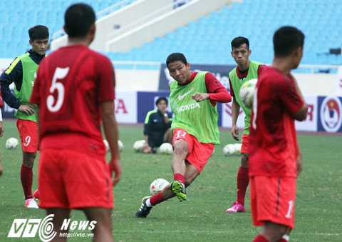 Buổi tập của ĐT Việt Nam bắt đầu lúc 16h trên sân Mỹ Đình. Do HLV Miura đã lên đường sang Indonesia để "xem giò" đối thủ của ĐT Việt Nam nên Công Vinh cùng đồng đội ra sân tập luyện cùng trợ lý Đặng Phương Nam và Ngô Quang Sang.