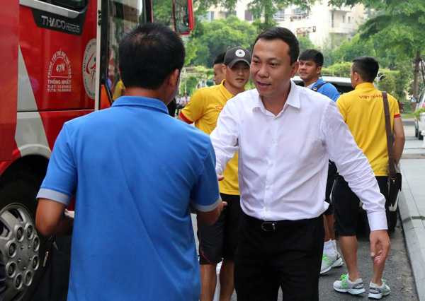 Phó chủ tịch thường trực VFF Trần Quốc Tuấn động viên toàn đội trước giờ khởi hành.