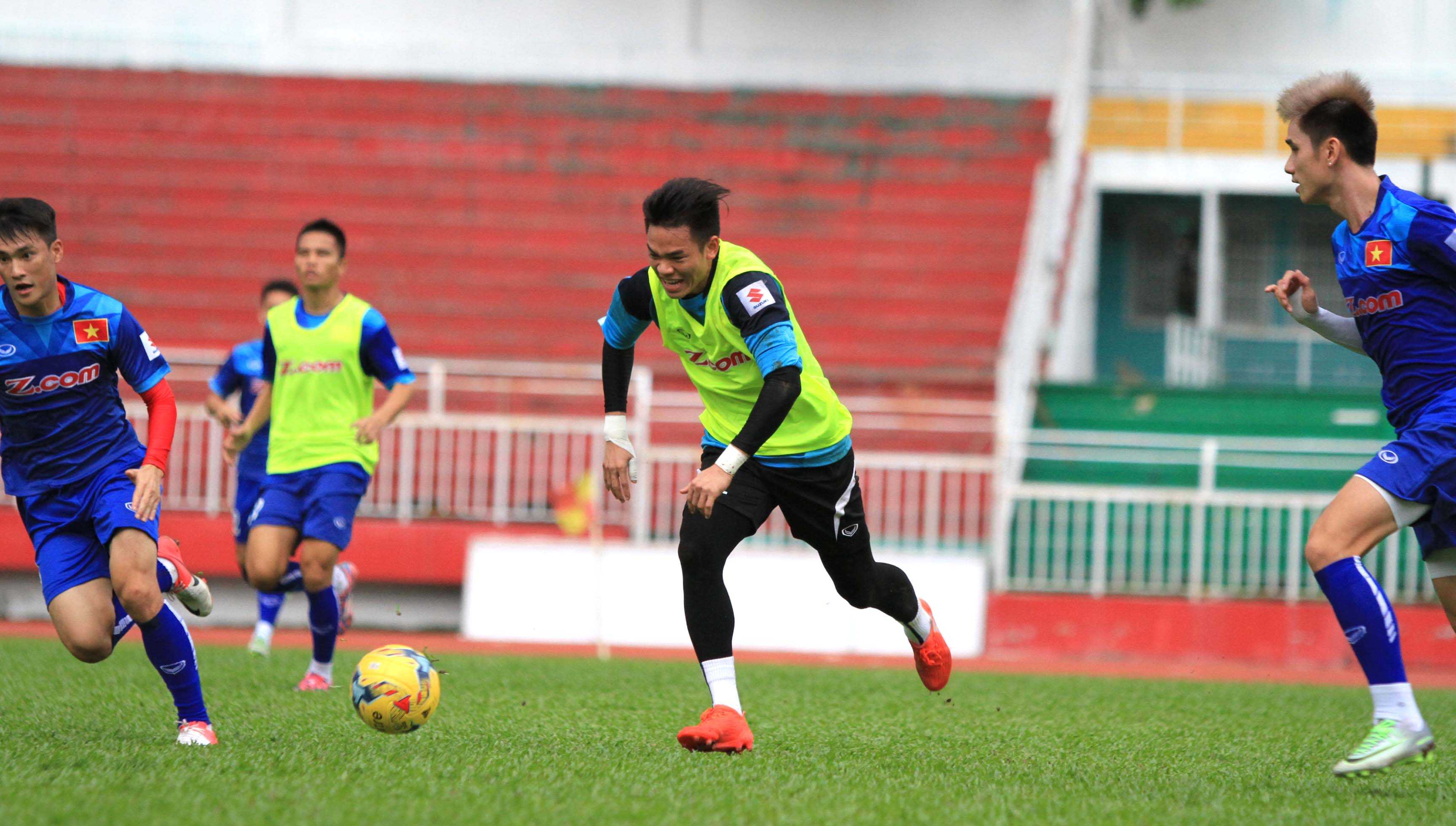 Quân số hiện tại của Tuyển Việt Nam chỉ có 20/30 cầu thủ, do Hà Nội T&T và Than Quảng Ninh còn phải đá lượt về chung kết Cúp Quốc Gia, cũng như bộ ba Công Phượng, Tuấn Anh, Xuân Trường chưa thể từ nước ngoài trở về (Ảnh: Hoàng Tùng)