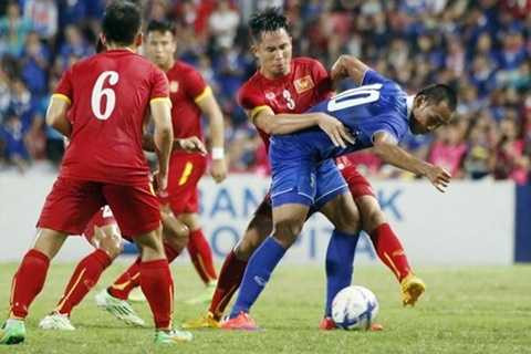 | Hậu vệ Việt Nam vây ráp cầu thủ Thái Lan |