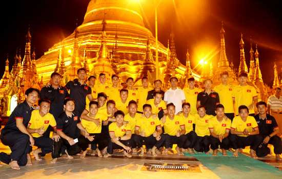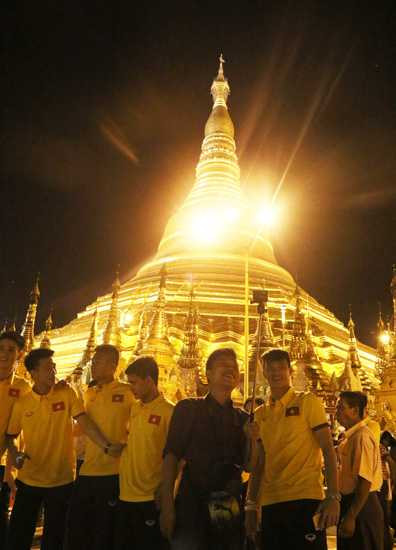 Dưới đây là một số hình ảnh ĐT Việt Nam trong không gian kỳ ảo của chùa vàng Shwegadon: