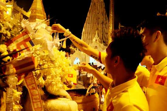 Với đa số các cầu thủ ĐT Việt Nam, đây không phải là lần đầu tiên được tới thăm chùa vàng và đắm chìm vào không gian tâm linh của đạo Phật. Nhưng khi đứng trước rừng tháp vàng lấp lánh và hít thở bầu không khí bảng lảng hương trầm, mỗi người đều có những cảm xúc rất riêng và mới lạ. Điểm chung lớn nhất có lẽ là ai cũng cầu mong nhận được sự bình an, may mắn cho cá nhân và cho gia đình. Riêng với HLV trưởng Nguyễn Hữu Thắng, ông còn có thêm một tâm nguyện nữa, đó là mong vạn sự hanh thông trong hành trình của ĐTQG Việt Nam, để có thể thi đấu đạt thành tích cao nhất và mang lại niềm vui cho người hâm mộ.