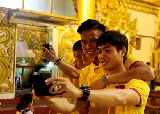 Với các cầu thủ trẻ, "selfie" là không thể thiếu.
