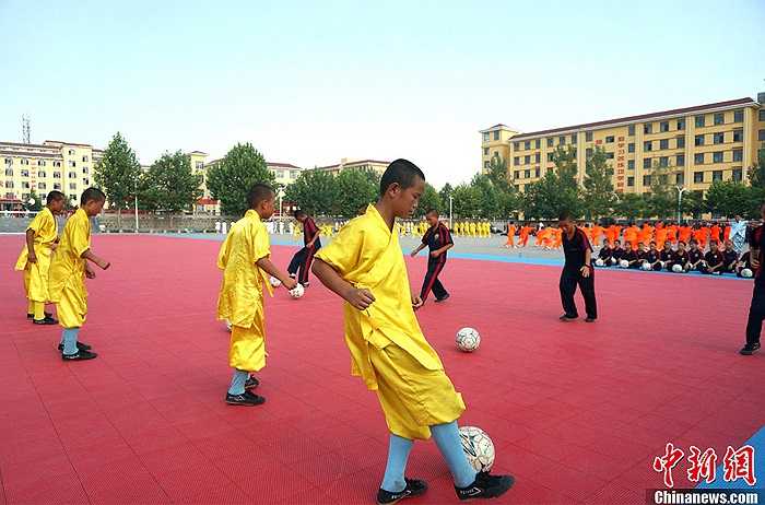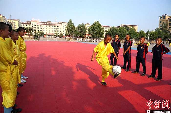 Các cầu thủ nhí của Học viện Thiếu Lâm đi biểu diễn.