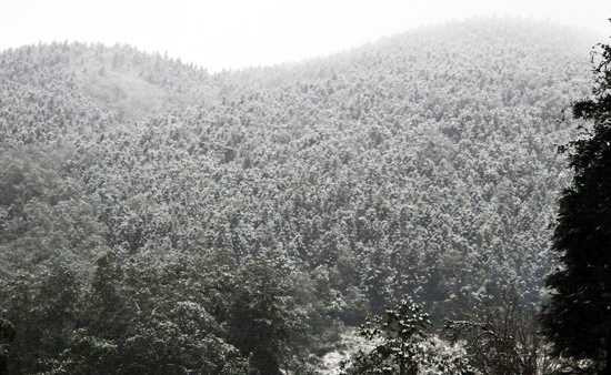 Tuyết phủ trắng rừng thông trên đèo Ô Quý Hồ vào sáng nay