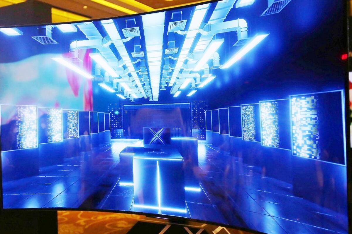 Cận cảnh mẫu TV W82 có khả năng biến hình từ duỗi thẳng đến uốn cong.