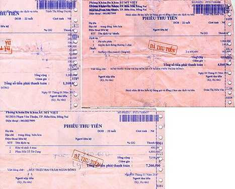 Phiếu thu của Phòng khám đa khoa Âu Mỹ Việt có giá cao cho các dịch vụ (ảnh báo Đồng Nai).