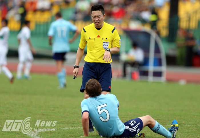 2. Trận đấu có 7 phút bù giờ, HLV Christospher Corica ở ngoài sân thì chạy ra phía trọng tài bàn phản đối. Còn trong sân, các học trò của ông thi nhau ăn vạ mà điển hình là William Madden. Hậu vệ cánh của U21 Sydney đã phải nhận thẻ vàng từ trọng tài chính Kim Dae Yong vì lỗi cố tình nằm sân câu giờ.![]() |