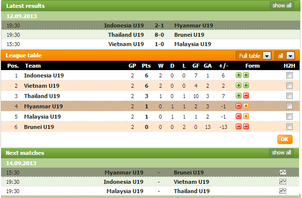 Ở hai trận đấu sau đó của bảng B, chủ nhà U19 Indonesia đã vượt qua U19 Myanmar với tỷ số 2-1. Trong khi đó, U19 Thái Lan có chiến thắng 8-0 trước U19 Brunei.
